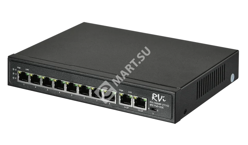 RVi-1NS08F-2T (1G) - Сетевой коммутатор предназначен для соединения нескольких узлов компьютерной сети в пределах одного или нескольких сегментов, а также передачи питания с использованием технологии PoE.
