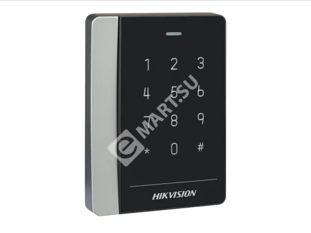 Hikvision DS-K1102EK - Считыватель карт EM-Marine предназначен для внешней установки. Устройство заключено в корпус, защищенный от влаги и пыли согласно стандарту IP64, что в совокупности с диапазоном рабочих температур -40 °C… +70 °C обеспечивает стабильную работу устройства на улице в любое время года. Дистанция считывания — 50–60 мм, рабочая частота — 125 КГц. Модель базируется на 32-битном процессоре 1 ГГц, оборудована сенсорной клавиатурой на 12 клавиш, LED индикатором (питание, статус соединения, статус идентификации), встроенным бипером, тампером. Предусмотрены самодиагностика и откат до предшествующего обновлению состояния (в случае ошибок). Интерфейсы: Wiegand 26/34, RS-485. Питание — DC 12 В, рабочий ток — максимум 0.5 А. В режиме пиковых нагрузок устройство потребляет не более 6 Вт. Габариты — 132.092.320.5 мм, вес — 140 г. Сертификация — CE, FCC. Тип монтажа — накладной.