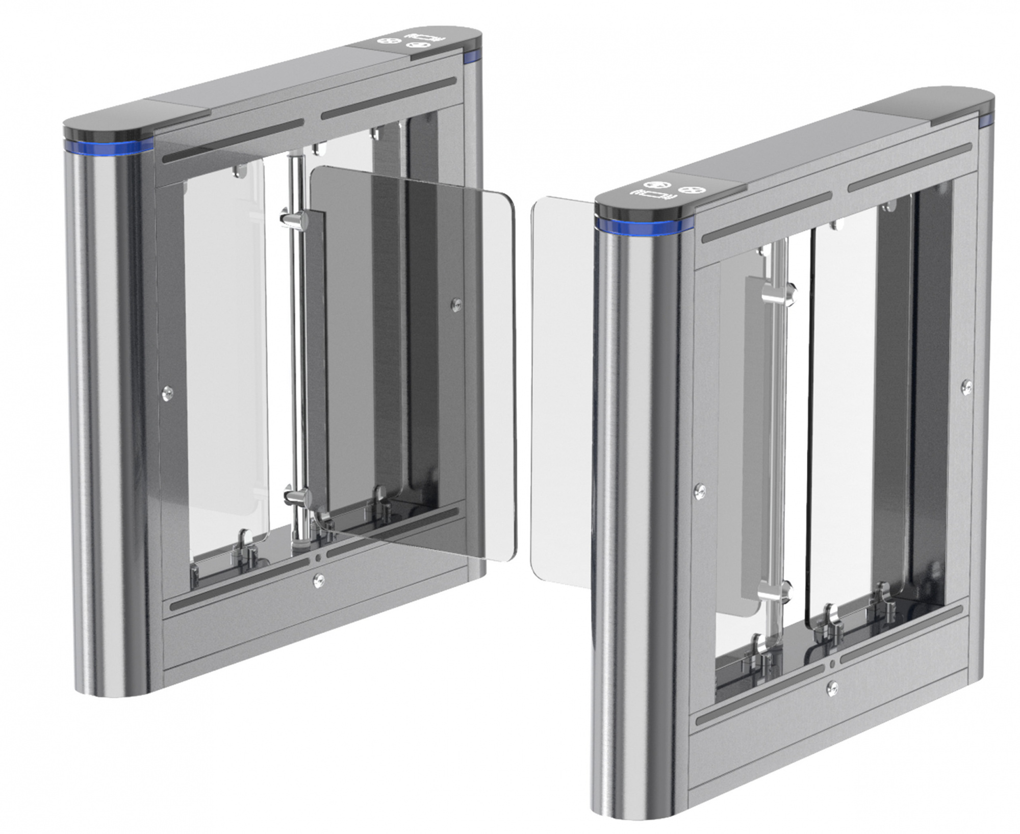 Блокпост РСП 400 – это преграждающая конструкция, имеющая створки, которые закреплены на вертикальных валиках и могут распахиваться как в одну сторону, так и в другую. Распашной турникет оборудован функцией «Антипаника». Эта функция автоматически освобождает проход в экстренных случаях или при сбое электропитания, также она может быть активирована с пульта ДУ.