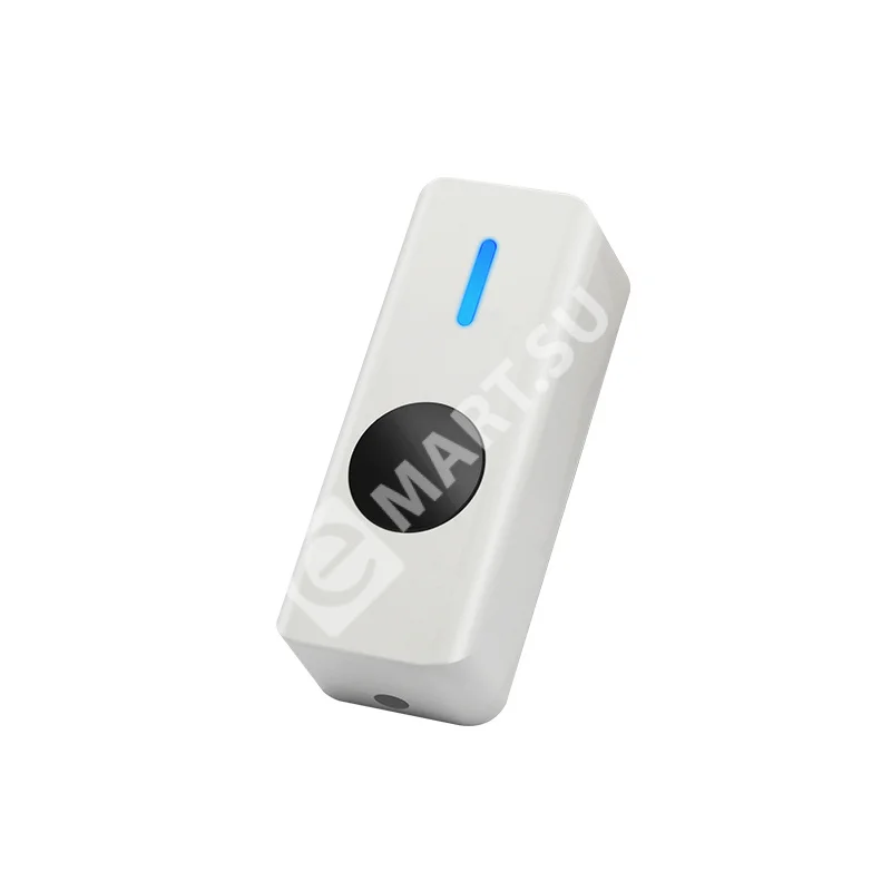 Бесконтактная кнопка выхода, накладная, пластиковый корпус белого цвета. Встроенный ИК-датчик определяет поднесение руки, и кнопка срабатывает без необходимости касания.