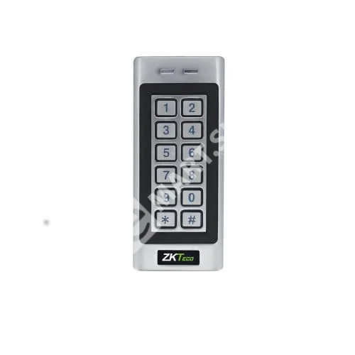 Терминал доступа ZKTeco MK-V (MF) рассчитан на уличную эксплуатацию в любое время года: корпус соответствует стандарту защиты от пыли и влаги IP66, рабочие температуры — -40 ºС… +60 ºС. Поддерживает идентификацию 1000 пользователей по карте или паролю, карте и паролю. После пяти неудачных попыток ввода PIN-кода или карты формирует тревожный сигнал.
