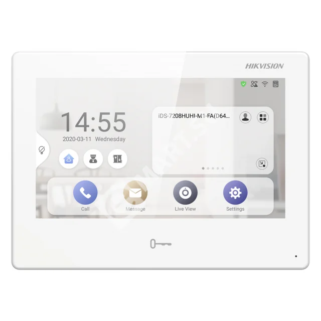 HikVision DS-KH9310-WTE1(B) - видеодомофон (ОС Android 10.0) 7″ цветной TFT-сенсорный экран, разрешение 1024 × 600, емкостный сенсорный экран/кнопки; Встроенный всенаправленный микрофон и динамик с поддержкой подавления шумов и эффекта эхо; Память 1Гб, Флеш 4Гб EMMC; Auto 10/100M Ethernet, Wi-Fi 802.11 b/g/n, TCP/IP, SIP; Тревожный вход: 8; Тревожный выход: 2 реле; Питание: DC 12В, стандартный PoE; Рабочая температура: От -10 до +50 °C; Размеры: 187 × 137 × 25.7 мм; Вес: 419.3г; Поддержка управления охранной панели AX PRO через домофон; Установка приложения на ОС Android