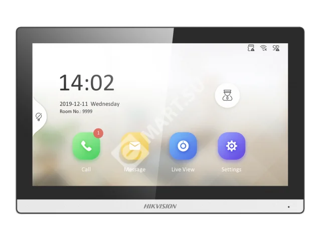 HikVision DS-KH6350-WTE1 - IP видеодомофон с WI-FI. 7" цветной TFT LCD экран с разрешением 1024*600; встроенные микрофон и динамик; слот для TF карты до 128Гб; тревожные входы/выходы 8/2; 1 RS-485; 1 RJ-45 10M/100M Ethernet, Wi-Fi; DC12В/PoE; 10Вт; -10 °C...+50°C; размер 175 x 113.5 x 21 мм