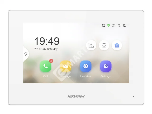 HikVision DS-KH6320-LE1(B)/White - IP видеодомофон. Сенсорный 7" TFT LCD экран 1024*600; встроенные микрофон и динамик; тревожный вход 8; 10M/100M Ethernet; DC12В/PoE; 6Вт; 0 °C...+55°C; 200 x 140 x 15.1 мм