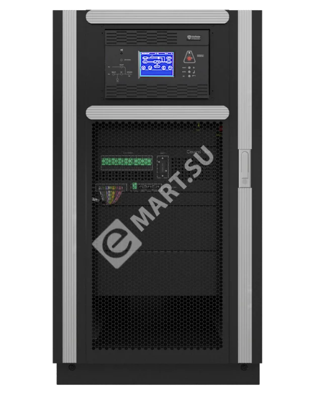 ИБП Сайбер Электро ПАТРИОТ-60Ш , вход 3Ф, выход 3Ф, максимальная мощность 60кВА/54кВт при установке 3х силовых модулей ПАТРИОТ-20М, без батарей, габариты 1100 x 600 x 900, масса шкафа (без силовых модулей) 120 кг.