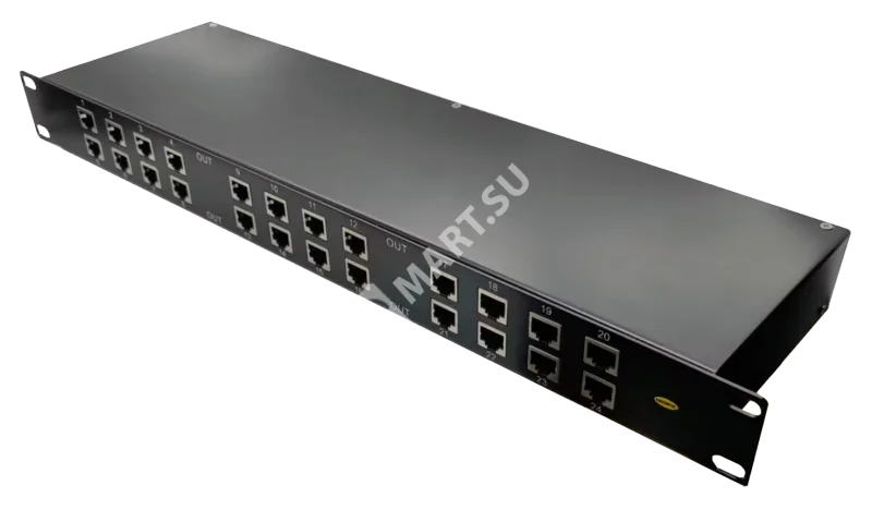 Количество защищаемых устройств: 24; Тип разъёма: RJ45 (8P8C); Скорость передачи данных (Мбит/с, макс.): 1 000; Защищаемые контакты: 1,2,3,4,5,6,7,8; Защита линии PoE: IEEE802.3af, IEEE802.3at; Номинальное рабочее напряжение в линии данных/PoE (В): 5/48; Максимальное рабочее напряжение в линии данных/PoE (В): 6/60; Уровень защиты от напряжения Upx-x в линии данных/PoE (В): 60/400; Номинальный ток разряда Линия/Земля (кА, 8/20 мкс): 2.5; Максимальный ток разряда (кА, 8/20 мкс): 5; Время срабатывания в линии данных/PoE (нс): 1 / 25; Вносимые потери, дБ: 0.2; Диапазон рабочих температур (мин.): -40 °С; Диапазон рабочих температур (макс.): 80 °С; Материал корпуса: Металл; Ширина: 484 мм; Глубина: 130 мм; Высота: 45 мм; Тип монтажа: в 19" стойку; Вес: 2 000 г