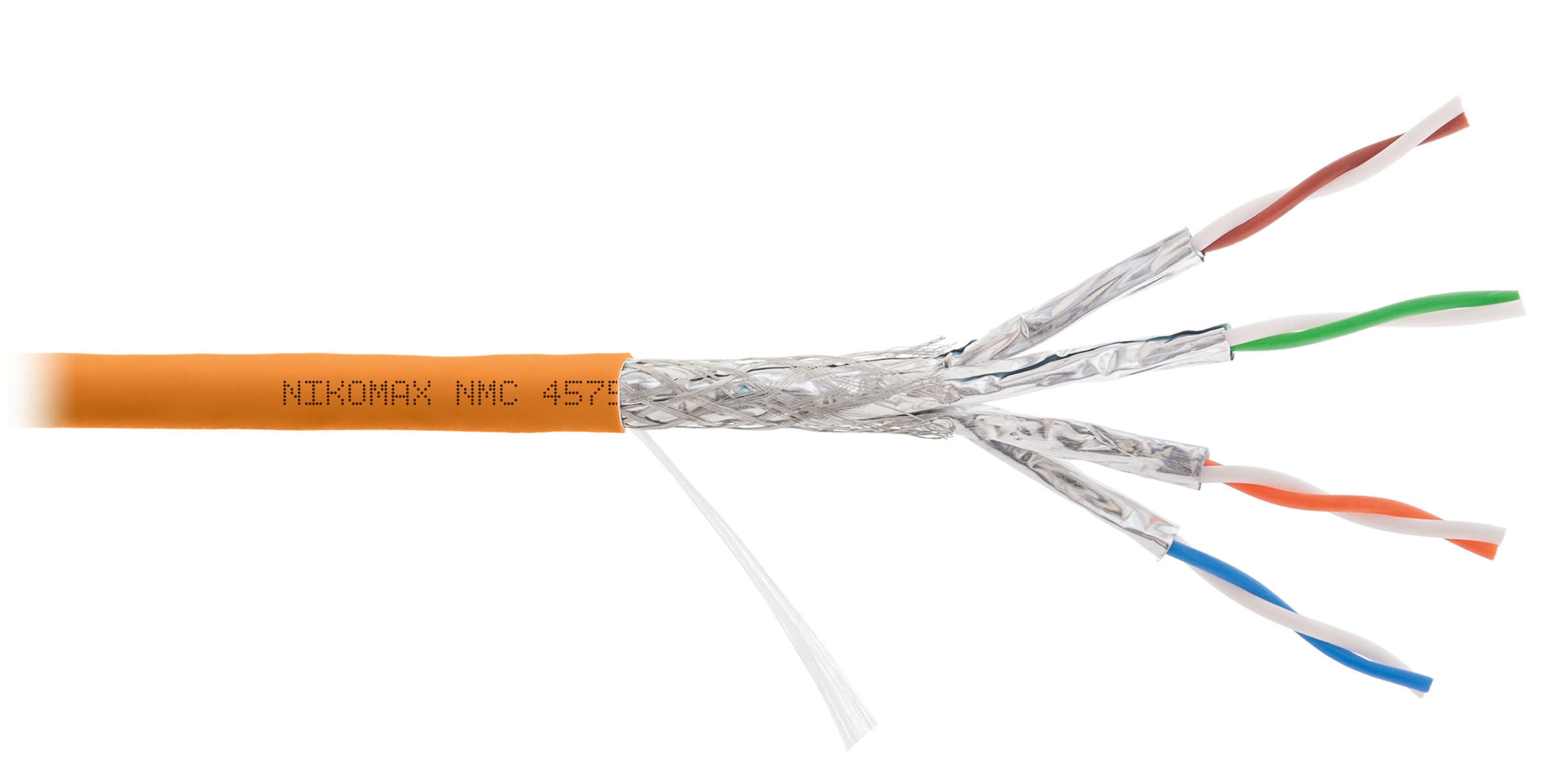 Кабель NIKOMAX S/FTP 4 пары, Кат.7a (Класс Fa), тест по ISO/IEC, 1000МГц, одножильный, BC (чистая медь), 23AWG (0,58мм), полимерный материал нг(А)-HF, внутренний, оранжевый, 500м - гарантия: 5 лет /15 лет системная