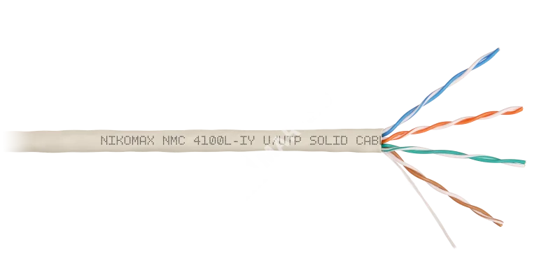 Кабель NIKOMAX U/UTP 4 пары, Кат.5e (Класс D), тест по ISO/IEC, 100МГц, одножильный, BC (чистая медь), 24AWG (0,51мм), полимерный материал нг(А)-LSLTx, внутренний, светло-серый, 305м - гарантия: 5 лет / 15 лет системная