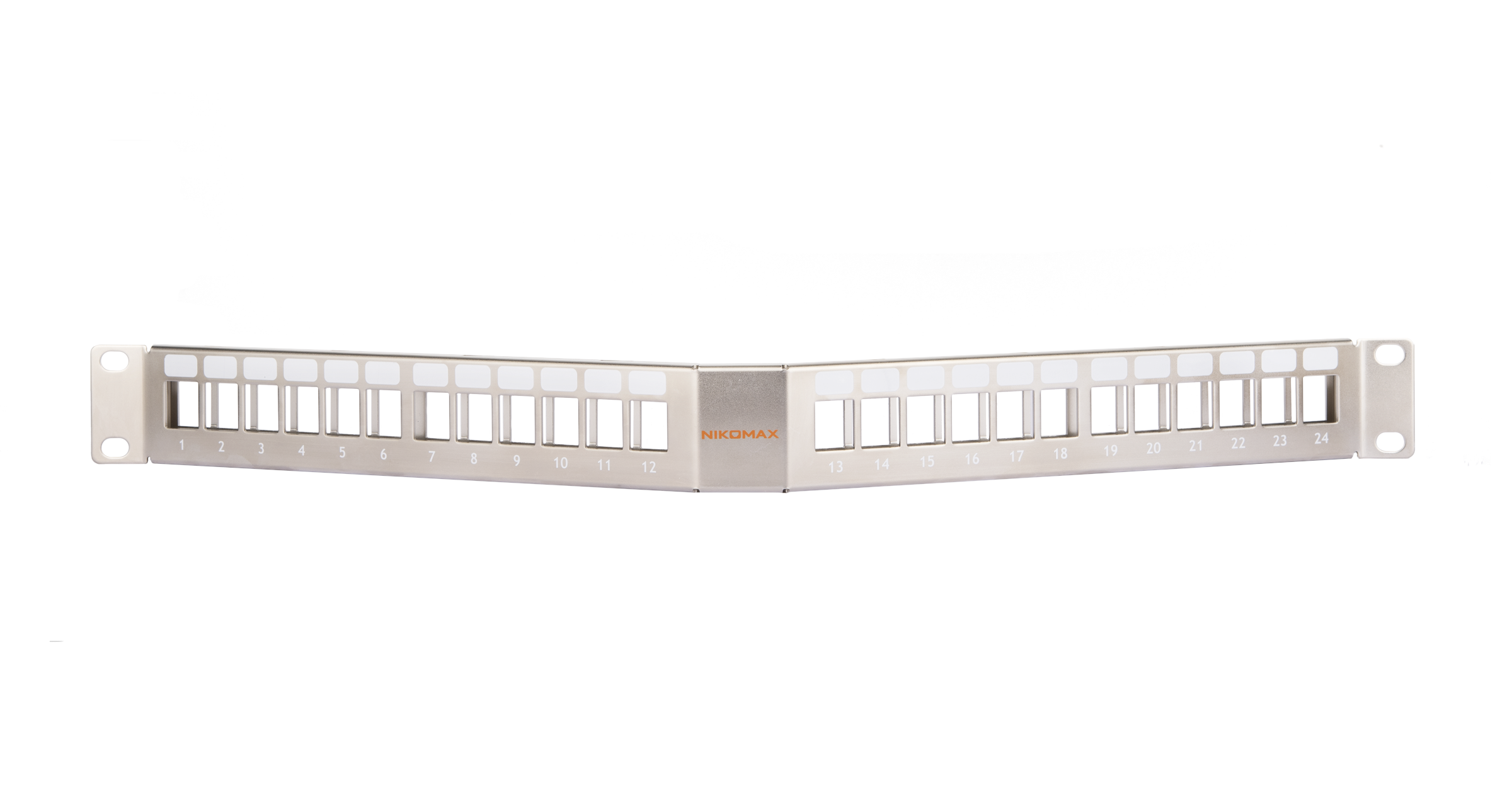 Коммутационная панель NIKOMAX 19", 1U, угловая, наборная, под 24 модуля Keystone, UTP/STP, с заземлением, с органайзером, металлик
