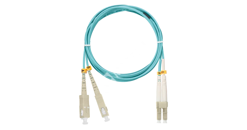 Шнур NIKOMAX волоконно-оптический, переходной, многомодовый 50/125мкм, стандарта OM3, SC/UPC-LC/UPC, двойной, полимерный материал нг(A)-HF, 2мм, аква, 2м