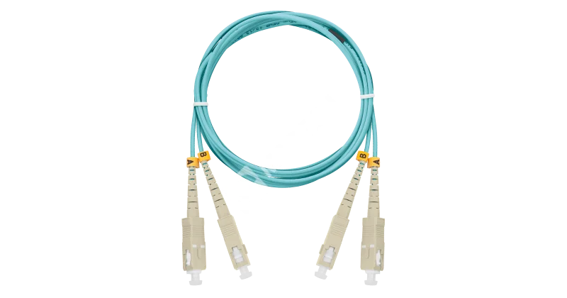 Шнур NIKOMAX волоконно-оптический, соединительный, многомодовый 50/125мкм, стандарта OM3, SC/UPC-SC/UPC, двойной, полимерный материал нг(A)-HF, 2мм, аква, 2м