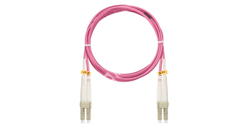 Шнур NIKOMAX волоконно-оптический, соединительный, многомодовый 50/125мкм, стандарта OM4, LC/UPC-LC/UPC, двойной, полимерный материал нг(A)-HF, 2мм, маджента, 3м