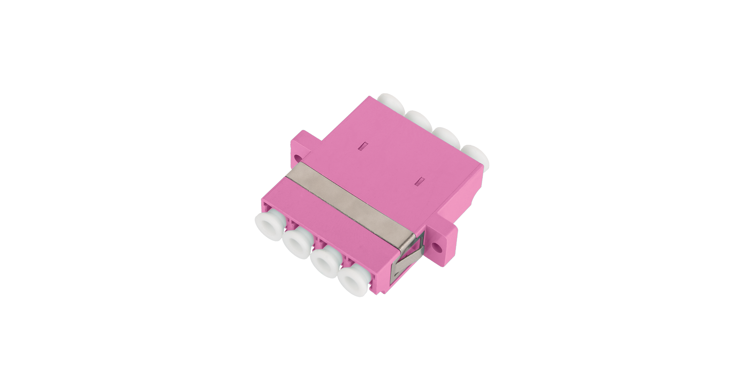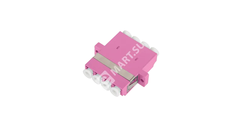Адаптер NIKOMAX волоконно-оптический, соединительный, многомодовый, стандарта OM4, LC/UPC-LC/UPC, квадро, пластиковый, без шторки, с фланцами, маджента, уп-ка 2шт.