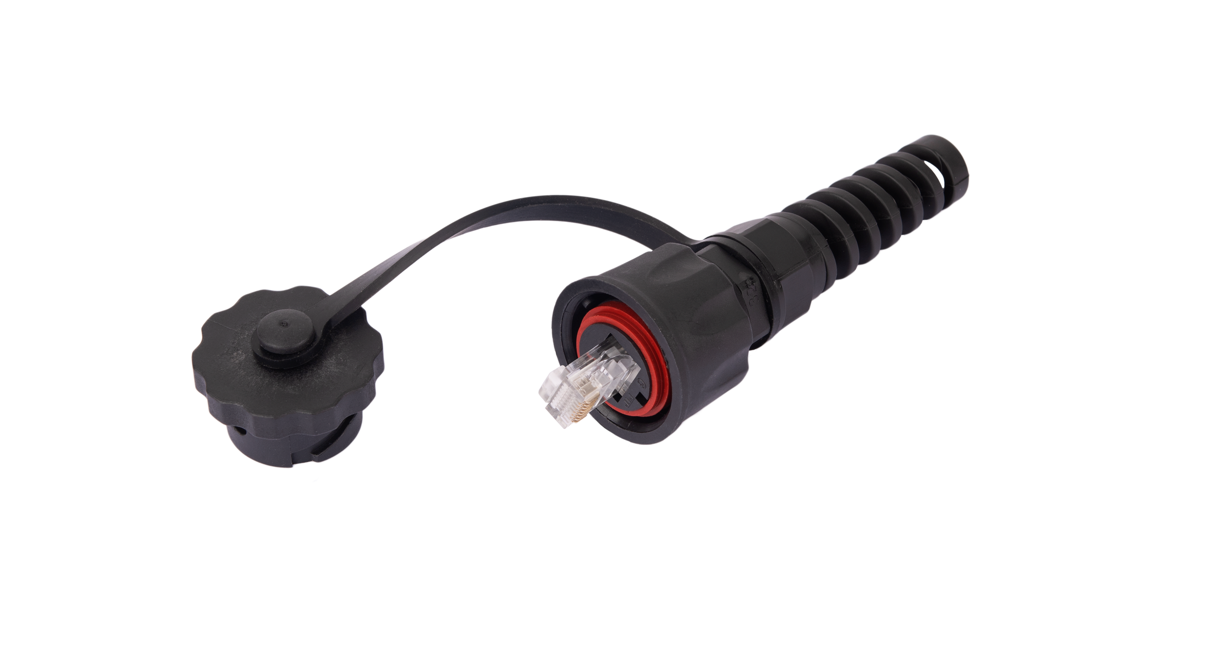 Индустриальный коннектор NIKOMAX RJ45/8P8C, Кат.6 (Класс E), 250МГц, покрытие 50мкд, неэкранированный, IP67, для одножильной витой пары,  с защитной крышкой, черный