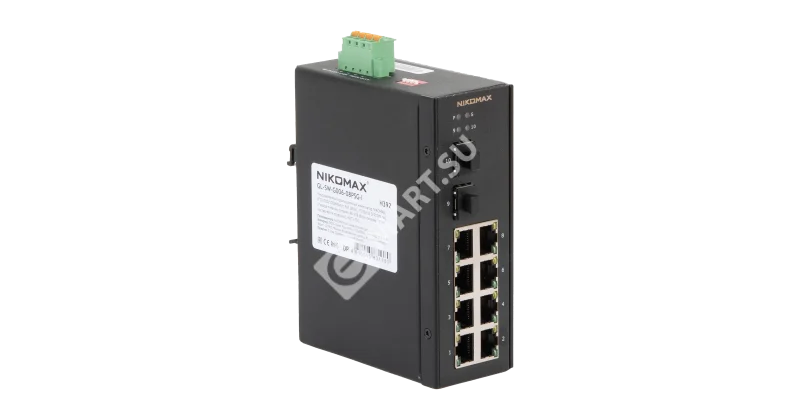 Неуправляемый промышленный коммутатор NIKOMAX, 8*10/100/1000Мбит/с PoE (af/at), 2*1Гбит/с SFP, крепление на DIN-рейку, 2*ввода питания, питание 44-57В (блок питания 240Вт поставляется отдельно), -40С +75С.