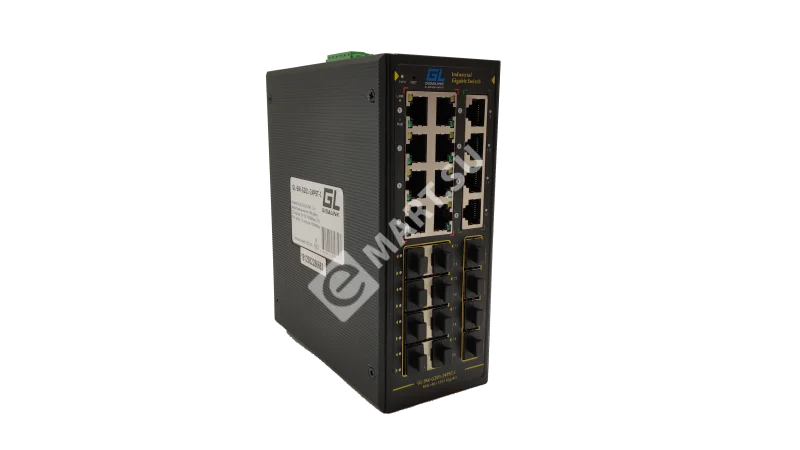 Коммутатор NIKOMAX, L2+, индустриальный на DIN рейку, 12x10/100/1000Mbps (1-8 PoE af/at), 12x1000mbs SFP, 1 Консольный RJ-45, питание 48В 480W поставляется отдельно