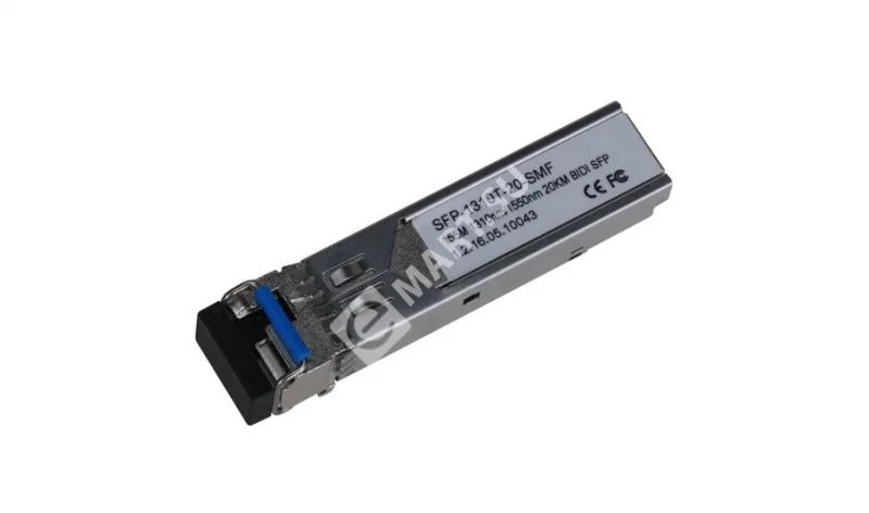 SFP-модуль LC SM Разъем: LC; скорость передачи: до 155Mбит/с; длина кабеля: до 20км (одномодовое оптоволокно); длина волны (Tx/Rx): 1310нм/1550нм;