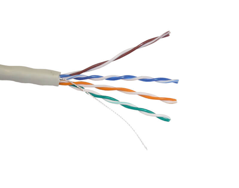 Кабель витая пара UTP 4 применяется в системах СКС при при прокладке внутри зданий. Предназначены для использования в высокоскоростных системах передачи данных со скоростью до 1Гбит/с. Кабель соответствует стандартам ANSI\TIA\EIA-568-B.2 Проходит Fluke тест на 100м Огнестойкость: UL VW-1, IEC-332.1 Арамидная нить позволяет легко удалять оболочку кабеля на необходимую длину. Технические характеристики: Проводник, d: медь (Cu), одножильный Внешний d кабеля: 4,5 мм± 0,2мм Тип и цвет оболочки кабеля: ПВХ серый Применение: для внутренних работ Бухта: 305 м Проходит Fluke тест на 100 метрах Относительная скорость распространения сигнала (NVP): 72% Диапазон частот: 1-100 МГц Волновое сопротивление, Ом: 100 + -15 Дисбаланс сопротивления 5% Диапазон температур °С: Хранение: от -40 до +60 Прокладка: от 0 до +60 (при этом до начала прокладки кабель должен находиться в помещении с плюсовой температурой не ме